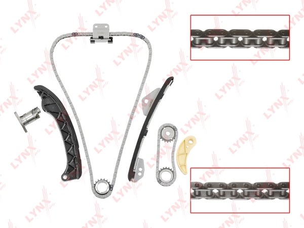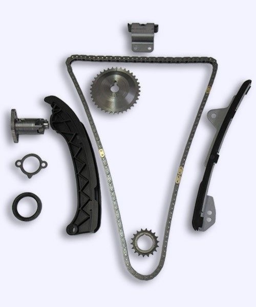 T058K — комплект для замены цепи ГРМ В комплекте: цепь ГРМ (140 звеньев), натяжитель цепи, прокладка натяжителя, планка натяжителя цепи ГРМ, успокоители/направляющие цепи ГРМ №1 и №2, шестерни распредвала и коленвала, передний сальник коленвала.