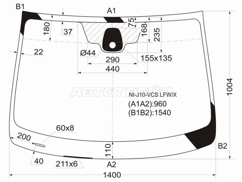 ZX110-R LFW/X — лобовое стекло бренда XYG (Китай) для автомобилей Toyota Mark II (X110) 00–04 и Mark II Wagon Blit 02–07.
